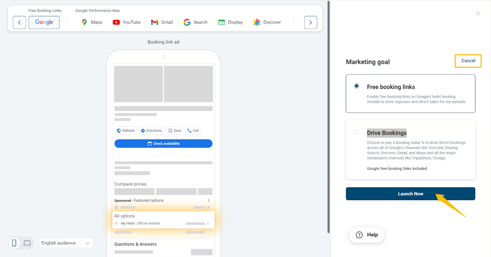- Then you can browse the marketing goal option offered by us If you find your hotels successfully: Free Booking Links and Drive Bookings.