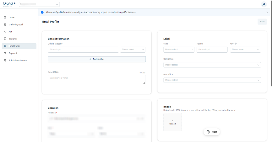 - Please carefully check and verify your Hotel name and Booking Engine. If you cannot find the hotel successfully or the booking engine doesn't match the DigitalPlus database, please submit your contact information.