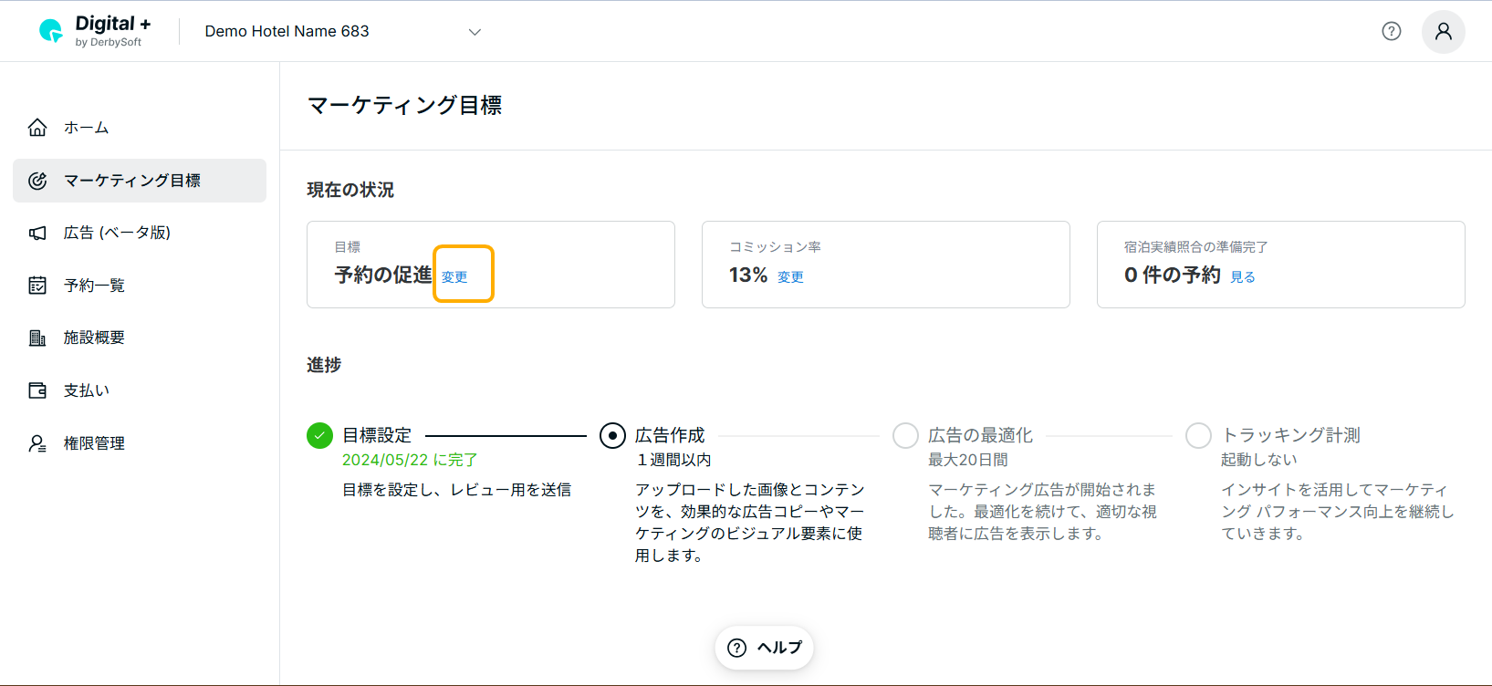 • 送信が完了すると、施設が自動的にアカウントにリンクされ、プラットフォーム上でマーケティング目標 や 進捗 を確認できます。